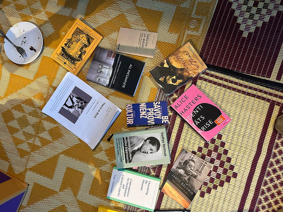 "La Palabre" deals with themes that we have developed as part of the TALKING OBJECTS LAB over the past two years in symposia, talks, think tanks and artistic interventions. The impulse for each evening is an input from the TALKING OBJECTS LAB (texts, video performances or lectures), on which one or two Berlin artists or speakers, especially from the BIPoC communities, work and discuss together with the invited guests. For the fixed ritual of eating together, we invite cooks, artists, anthropologists, poets and initiatives that deal with the cultural practice of eating, food and its colonial entanglements.